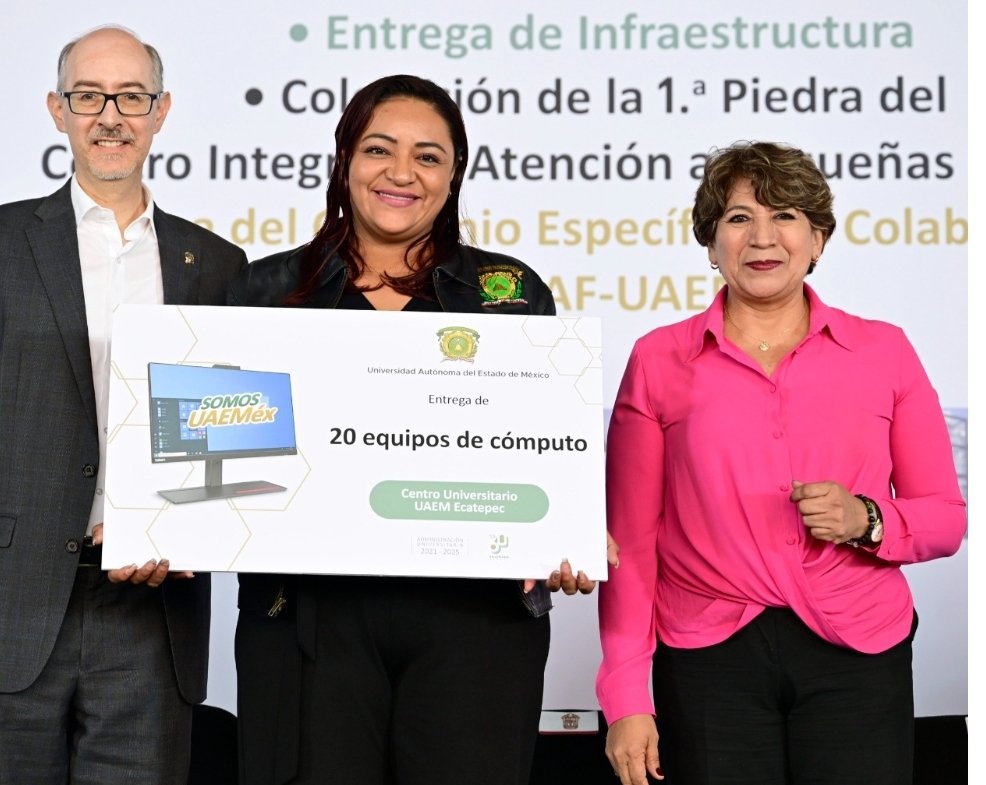 En el plantel Texcoco de la Universidad Autónoma del Estado de México (UAEMéx), la Gobernadora mexiquense hizo entrega de equipos de cómputo para laboratorios digitales destinados a los planteles de los municipios de Acolman, Amecameca, Cuautitlán Izcalli, Chimalhuacán, Ecatepec, Nezahualcóyotl, Teotihuacán, Tlalnepantla, Valle de Chalco y Texcoco.