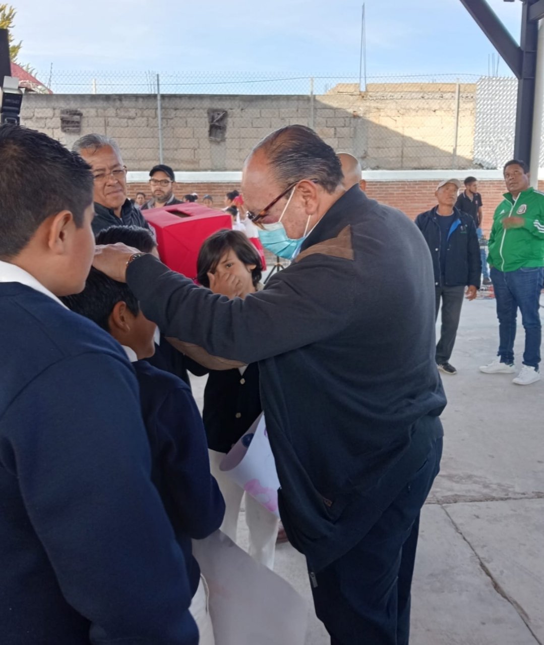 Reunidos en las instalaciones dé la Escuela Primaria «Adolfo López Mateos» en la Colonia La Joya, el presidente municipal hizo entrega de una techumbre que beneficiará a los alumnos y alumnas de dicha institucion, y donde a partir de hoy realizaran sus actividades en un espacio digno y protegido.