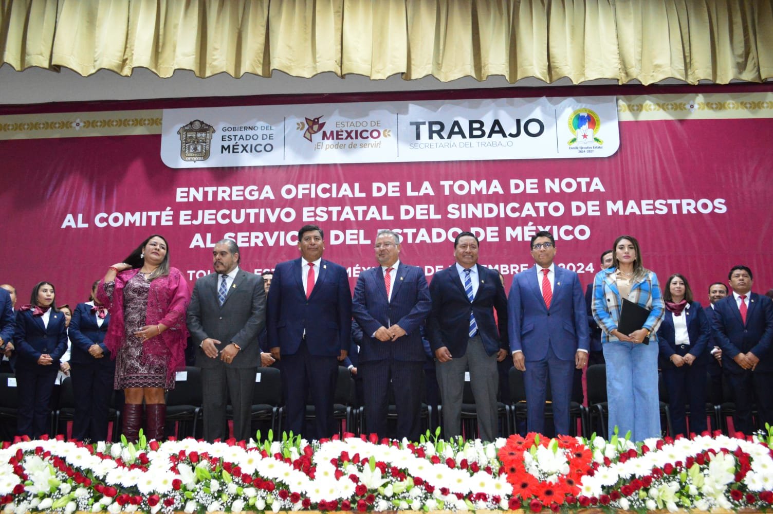 Por su parte, el Consejero Jurídico del Gobierno del Estado de México, Jesús George Zamora, expresó que la entrega de la Toma de Nota no es solo un acto administrativo, si no un símbolo de la democracia, la transparencia y el compromiso con el bienestar de la comunidad educativa, además de ser la organización sindical más grande y fuerte del país con más de 105 mil agremiados.