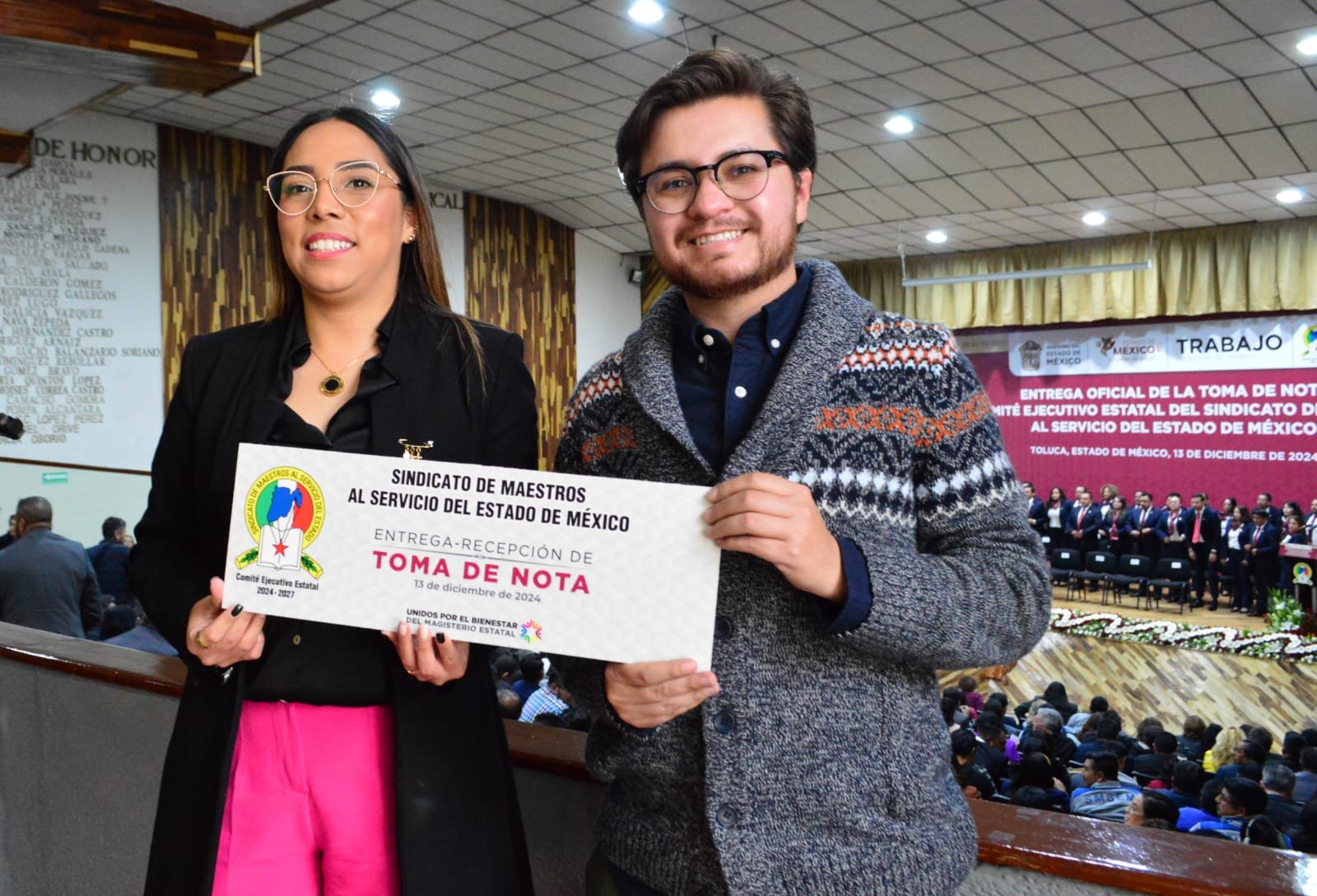 Toluca, EDOMEX.- Jenaro Martínez Reyes, Secretario General del Sindicato de Maestros al Servicio del Estado de México (SMSEM) recibió la Toma de Nota por parte de la Secretaría del Trabajo, documento que consolida la legalidad del Comité Ejecutivo Estatal 2024-2027.