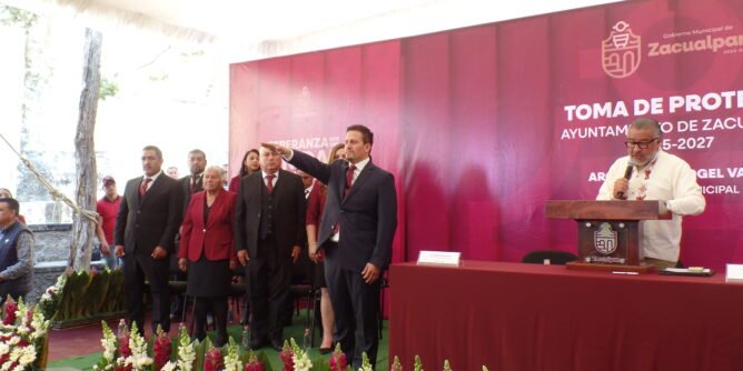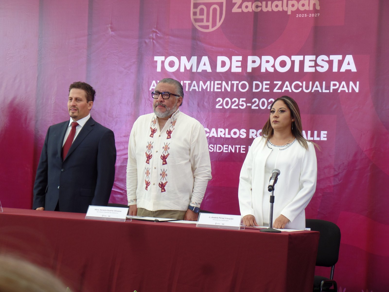 Zacualpan, EDOMEX.- Con el respaldo de su pueblo, quien se dio cita en la explanada de esta localidad, Carlos Rogel Valle rindió protesta como presidente municipal para el periodo 2025-2027.