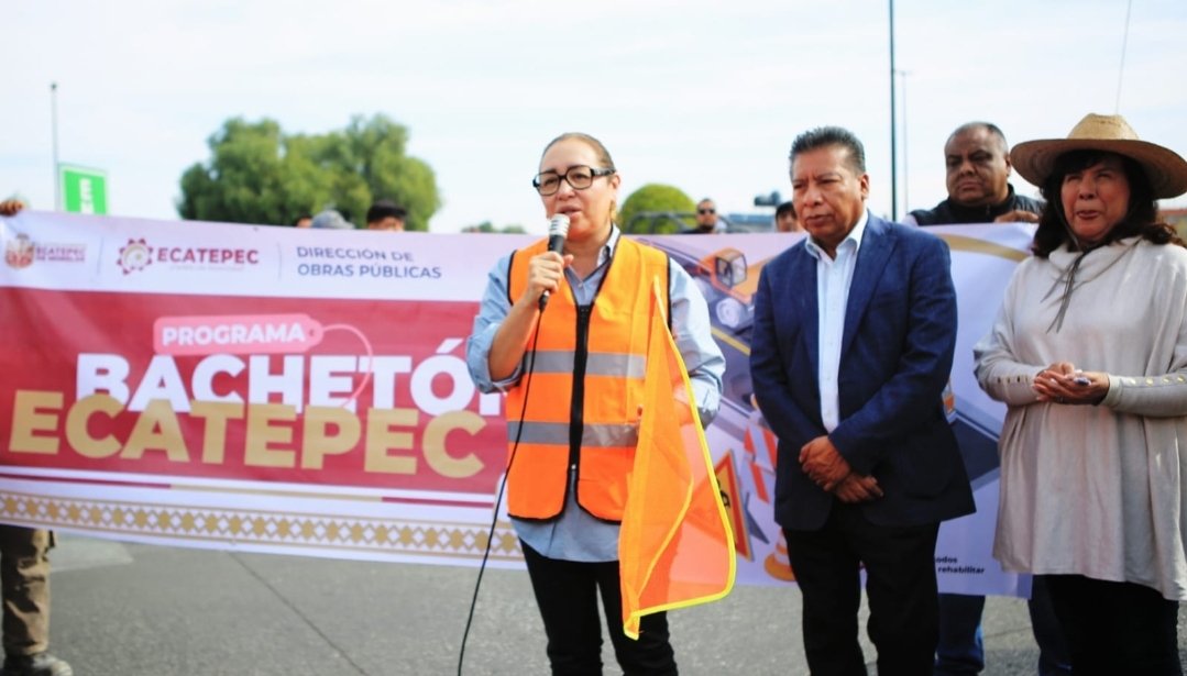 Ecatepec, EDOMEX.- Ante el grave abandono en que se encuentra el 80 por ciento de las calles y vialidades de Ecatepec, la presidenta municipal Azucena Cisneros Coss puso en marcha el programa Bachetón, cuyo propósito es lograr que en los primeros 100 días, el 50 por ciento de las colonias estén libre de baches. Durante el banderazo de salida en la avenida Revolución, la alcaldesa indicó que estas acciones serán permantes, a través de 20 cuadrillas que mensualmente utilizarán 26 mil metros cúbicos de asfalto, un promedio de 200 toneladas diarias.“Hoy 7 de enero inicia la recuperación de las vialidades en una primera etapa con 12 de las principales avenidas, agradecemos la participación de varios empresarios porque este trabajo de levantar Ecatepec es en equipo con todos los sectores de la sociedad en especial con los vecinos”.Indicó que trabajarán con celeridad para realizar la hazaña que representa mejorar las más 13 mil calles que se encuentran destrozadas “les vamos a pedir a los vecinos que tengan mucha comprensión porque vamos a obstruir algunas vías principales, pero es para su beneficio” .