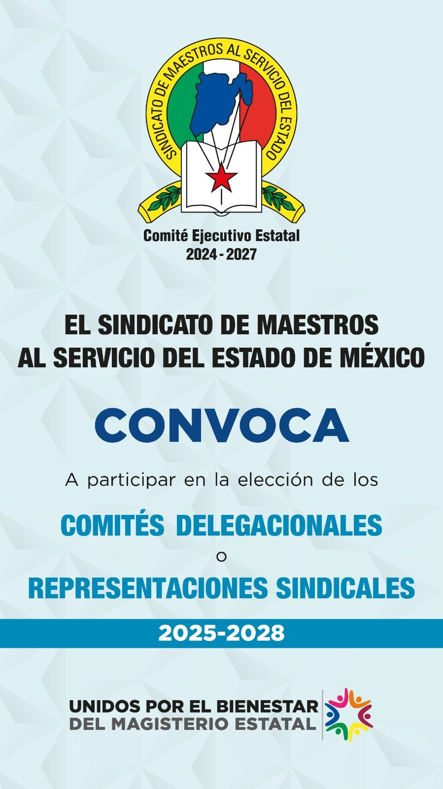 Toluca, EDOMEX.- Tras la publicación de la convocatoria, el Sindicato de Maestros al Servicio del Estado de México (SMSEM), se da arranque al proceso de elección para la renovación de los Comités Delegacionales y Representaciones Sindicales, que fungirán durante el periodo 2025-2028 en cada una de las zonas escolares y demarcaciones del subsistema educativo estatal.