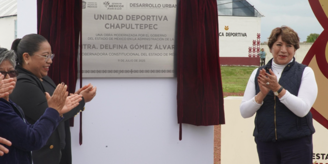 Chapultepec, EDOMEX.-  Luego de más de 20 años de abandono, la Gobernadora Delfina Gómez Álvarez inauguró la renovada Unidad Deportiva de Chapultepec, un espacio que vuelve a latir con fuerza gracias a una inversión de 16.4 millones de pesos. Esta obra, que forma parte del Programa de Obra Pública con sentido social, beneficiará a más de 7 mil 400 personas de los municipios de Chapultepec, Atizapán, Calimaya y Mexicaltzingo, quienes ahora cuentan con canchas, gimnasio al aire libre, alberca, pista de trote y áreas recreativas totalmente rehabilitadas.