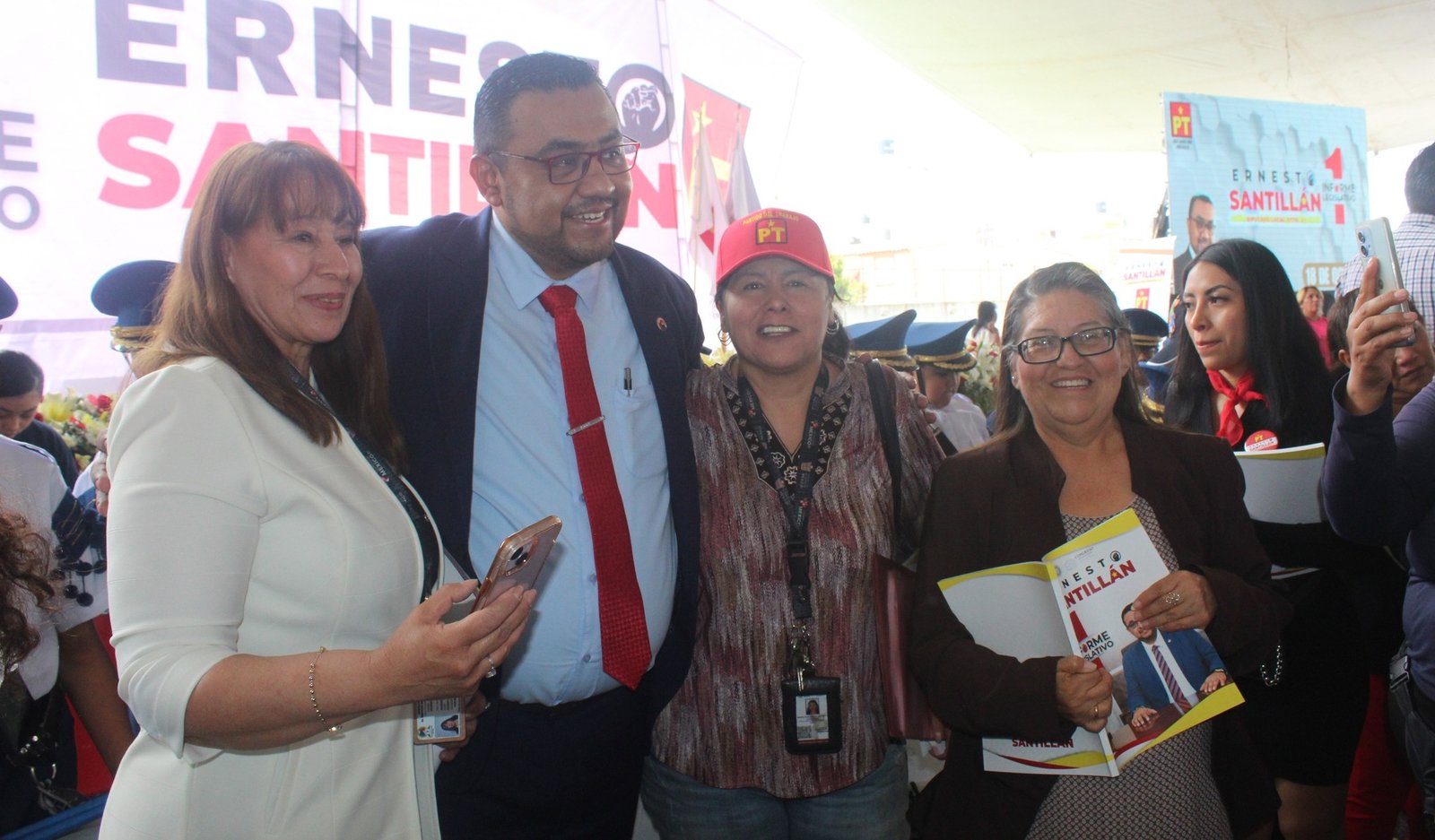 Uno de los puntos más aplaudidos de su informe fue la mención de que dona el 80 por ciento de su salario para programas sociales en beneficio de los habitantes de Ecatepec, sin distinción de distritos. Con estos recursos ha entregado más de 1,100 equipos deportivos, 2,500 mochilas y útiles escolares, y 60 computadoras a estudiantes de excelencia académica, entre ellos el caso emblemático de Ana Sofía, una joven que obtuvo un examen perfecto en la UNAM y que recibe apoyo económico mensual directamente del diputado. “Porque yo también fui estudiante y sé lo que es tener un sueño y no rendirse”, dijo con emoción.