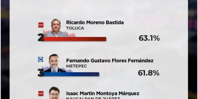 Toluca, EDOMEX.- El presidente municipal de Toluca, Ricardo Moreno Bastida, se posiciona como uno de los alcaldes mejor evaluados del Estado de México, al alcanzar el segundo lugar en el Ranking de Alcaldes elaborado por GobernArte S.C., con una destacada aprobación ciudadana del 63.1%.