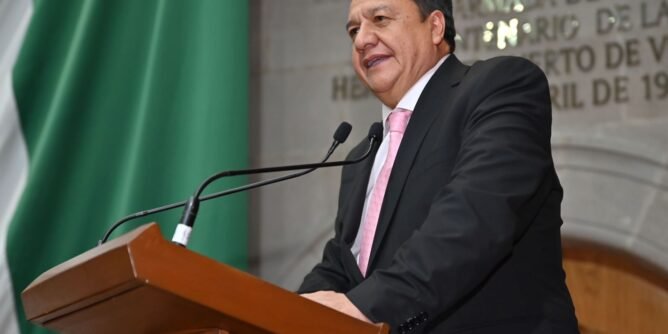 * El diputado Oscar González, líder del Grupo Parlamentario del PT (GPPT), propuso que los ayuntamientos y el Estado puedan cobrar derechos por el uso de suelo municipal, con topes establecidos por la ley federal.