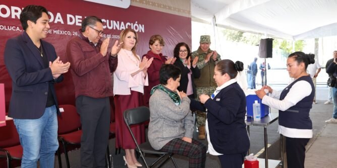 Frente al presidente municipal de Toluca, Ricardo Moreno Bastida, y al general de Brigada Estado Mayor, Armando López Esquivel, Montoya Olvera destacó que esta acción colectiva da seguimiento a la Campaña Nacional de Vacunación Invernal 2025-2026, generando barreras de protección, salud y bienestar para todos los sectores de la sociedad.