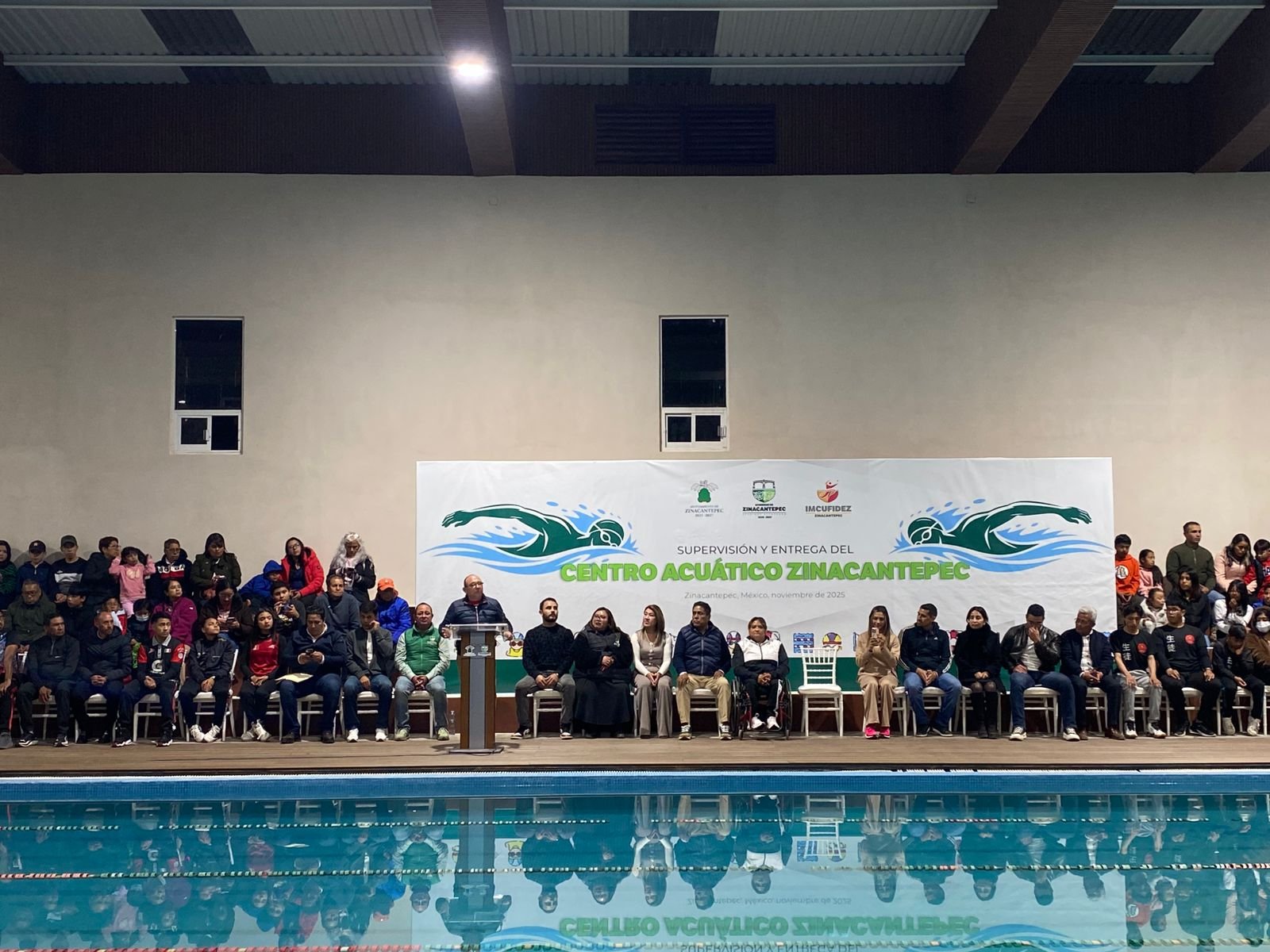 En su mensaje, el alcalde subrayó que este Centro Acuático no solo moderniza la infraestructura municipal, sino que consolida un punto estratégico para detectar y preparar nuevos talentos deportivos. “Esta alberca será un espacio para todas y todos, pero también un semillero de atletas que pondrán en alto el nombre de Zinacantepec”, señaló Vilchis Viveros, destacando la visión de un municipio que mira al futuro con disciplina y determinación.