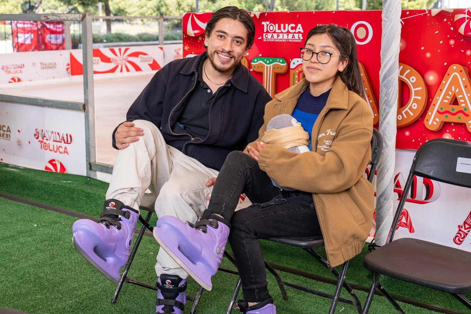 Toluca, Estado de México, 6 de diciembre de 2025.- Ochocientos metros cuadrados de diversión gratuita esperan a las familias toluqueñas en el corazón de la ciudad, con la pista de hielo instalada en la Plaza de los Mártires.