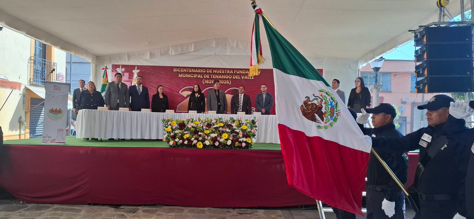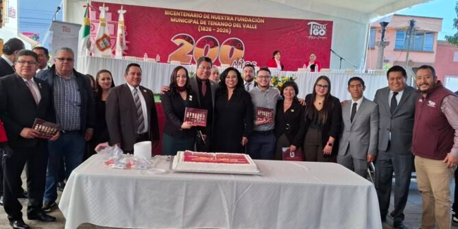 Tenango del Valle, EDOMEX.- En un ambiente solemne, festivo y profundamente emotivo, se llevó a cabo la ceremonia conmemorativa por el 200 aniversario de la fundación constitucional del municipio de Tenango del Valle, una fecha que reunió historia, identidad y visión de futuro. El acto fue encabezado por el presidente municipal Roberto Bautista Arellano, quien estuvo acompañado por su esposa Nallely Zotea, así como por integrantes del Ayuntamiento y autoridades municipales.