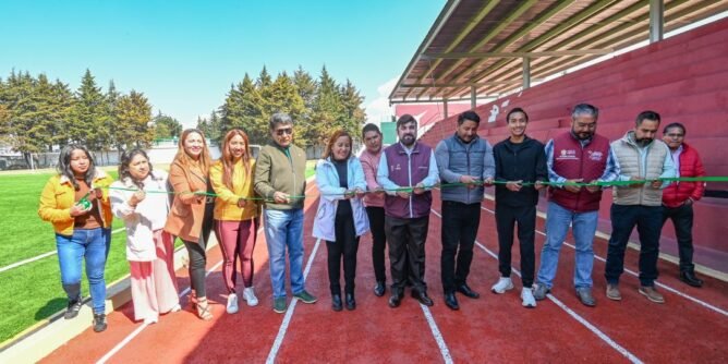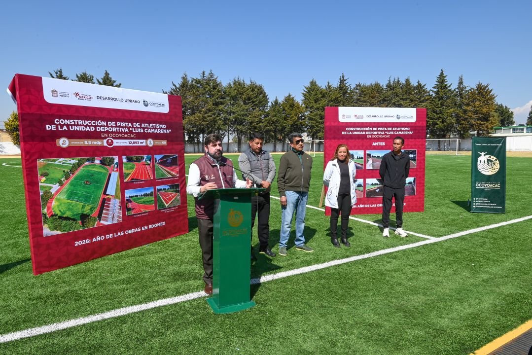 Oocyoacac, EDOMEX.- Atletas de Ocoyoacac recibieron del gobierno estatal la nueva pista de atletismo de la Unidad Deportiva “Luis Camarena”, con una inversión de 8.8 millones de pesos.