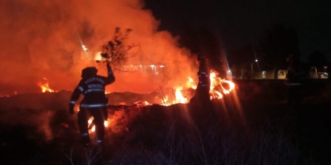 Toluca EDOMEX.- Tras intensas labores de combate, elementos de Bomberos de Toluca lograron controlar y sofocar el incendio de pastizal registrado en la avenida Las Partidas, el cual movilizó a los cuerpos de emergencia debido a la densa columna de humo que generó.