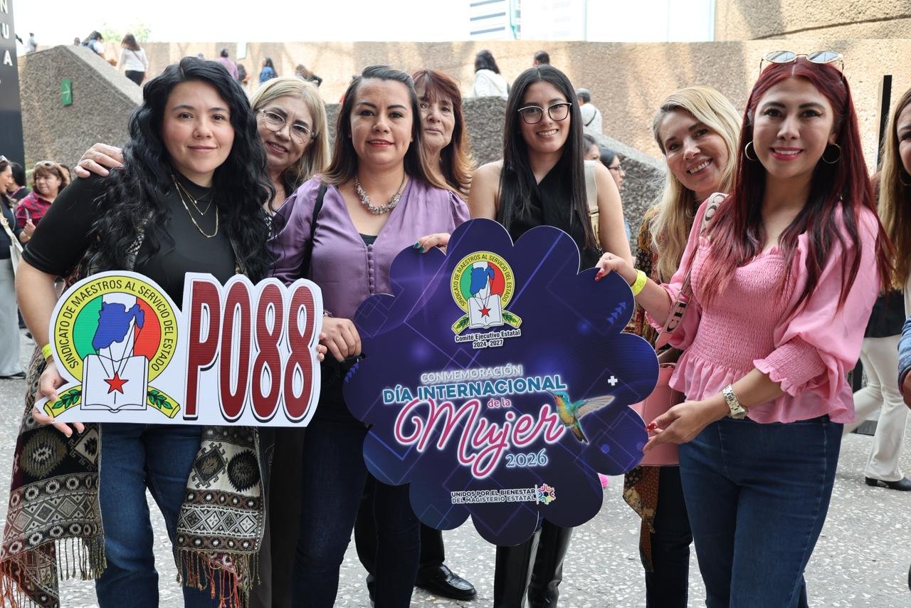 CDMX.- La celebración del Día Internacional de la Mujer tuvo un eco especial para el magisterio mexiquense. Más de 20 mil maestras del Sindicato de Maestros al Servicio del Estado de México (SMSEM) se reunieron en el Auditorio Nacional para una conmemoración que mezcló reconocimiento, memoria histórica y música.