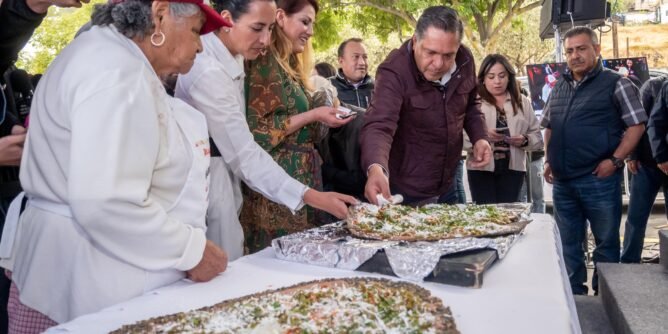 Acompañado por la presidenta del DIF Toluca, Rocío Pegueros Velázquez, el alcalde destacó que el huarache no solo es un platillo popular, sino una expresión viva de la riqueza del campo mexicano: maíz convertido en masa, frijoles que aportan sabor y tradición, nopal fresco y queso que corona cada preparación con un toque irresistible.