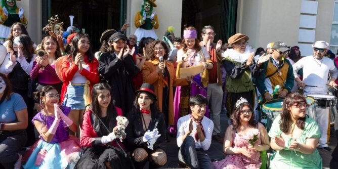 Los teatreros transformaron el espacio público en un escenario vivo, donde el teatro se manifestó como una expresión colectiva que conecta con la sociedad. La movilización reunió a integrantes de la CUT, alumnado de las licenciaturas en Artes Teatrales y Danza, así como agrupaciones de la Escuela de Bellas Artes y compañías independientes, quienes, desde sus distintas disciplinas, dieron identidad y fuerza a esta celebración.