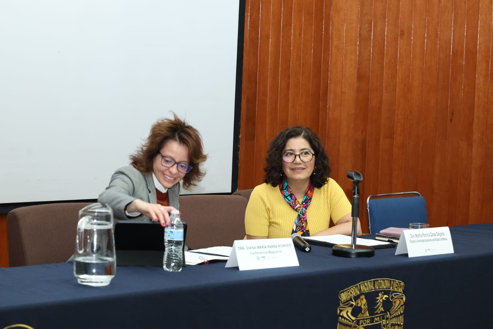 Como parte de las actividades, la rectora mexiquense moderó la conferencia magistral “¿Quién sostiene las ciudades?”, impartida por la especialista Diana María Parra Romero, en la que se abordaron los desafíos de la economía del cuidado en contextos urbanos contemporáneos.
